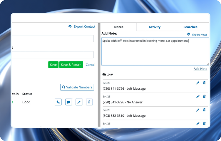 Calling disconnected numbers wastes your time. Validate the numbers in a contact record to perform a number scrub to determine if the number is disconnected and to lookup each numbers’ caller ID. Number validation is quick and it saves you time.