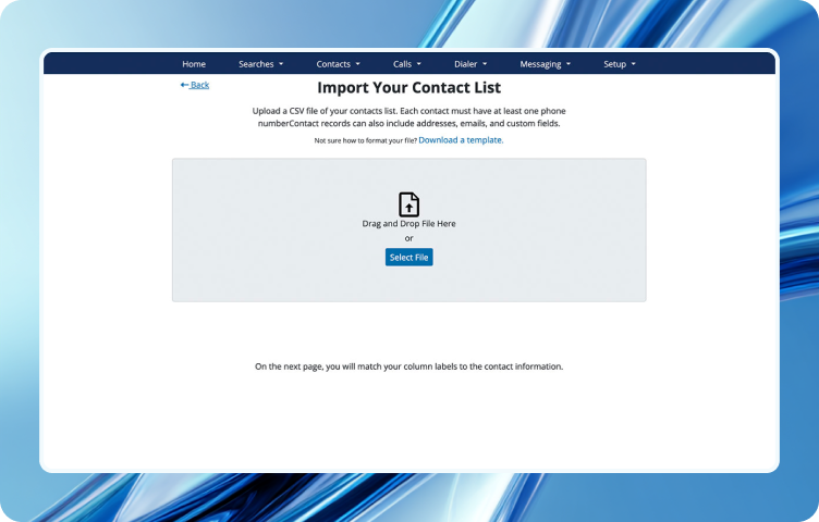 Contacts don’t always have to start from a search, you can import your own contact list. When you import a list into the Contact Manager you have full control over how your data is arranged in the contacts you create. You add custom fields, custom record IDs, and more. You can update your existing contacts by importing a list with new information.